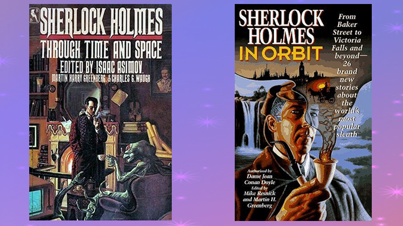 Since then – and especially after the stories came into the public domain – Sherlock Holmes has never looked back, to become one of the world’s most beloved, recognisable and ubiquitous characters and the subject of hundreds of plays, radio dramas, films and television series. And of course the subject too, of thousands of stories – from pastiches to parodies and beyond – in every conceivable genre, including science fiction and fantasy. Here’s a quick look at just some of Sherlock Holmes’ SFnal adventures on the printed page in their collected avatar.