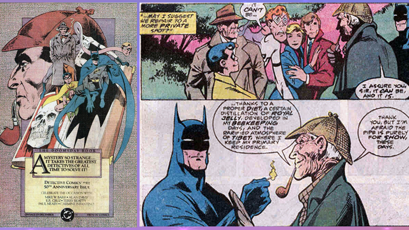 Another landmark comic appearance was in 1987 – the year the world celebrated the centennial of ‘the greatest detective of all time’ – when Sherlock Holmes helped Batman, often dubbed ‘the world’s greatest detective’, with a problem involving Moriarty’s descendants in the Golden Anniversary issue of Detective Comics, the title that first introduced the caped crusader. At the conclusion of the story, Sherlock Holmes attributes his longevity to ‘a proper diet, a certain distillation of royal jelly and the rarified atmosphere of Tibet’, his primary residence. Sidenote: For readers interested in knowing about the adventures of Sherlock Holmes in Tibet during the great hiatus, ‘The Mandala of Sherlock Holmes: The Adventures of the Great Detective in India and Tibet’ by Tibetan political activist and writer, Jamyang Norbu is recommended reading.