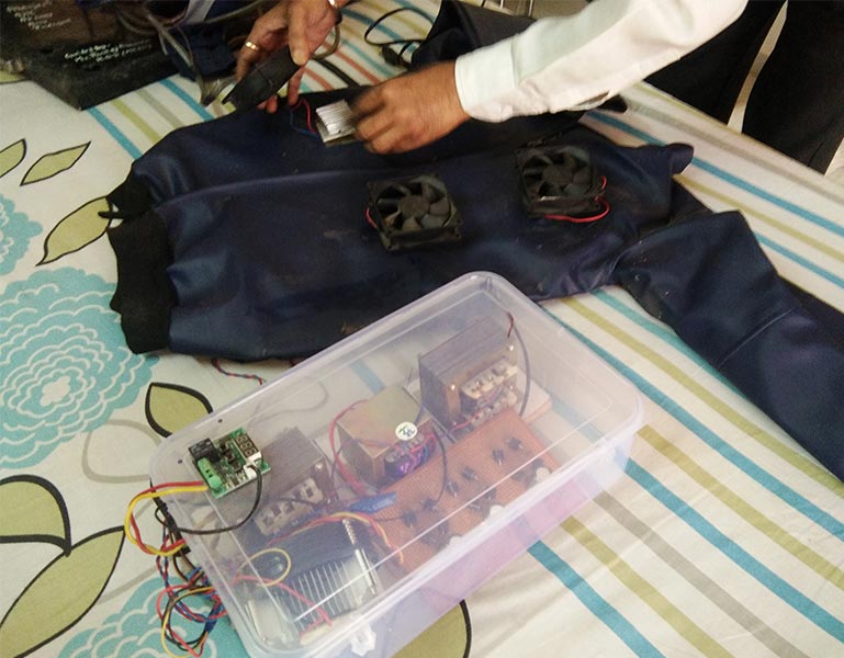 It cost Agarwal about Rs 14,000 to make the prototype of this jacket. Its AC-like cooling system consumes four units of electricity in an hour, resulting in a high operating cost. Agarwal said the prototype cost so much since it involved a lot of research. He’s now working on a variant of the jacket that will use a magnetic field instead of refrigeration techniques to reduce the wearer’s body temperature. And this model, he claimed, will not cost more than Rs 2,000.
