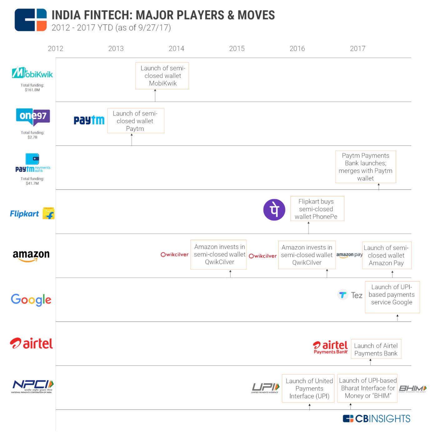 A timeline of major moves in India’s fintech space. Source: CB Insights