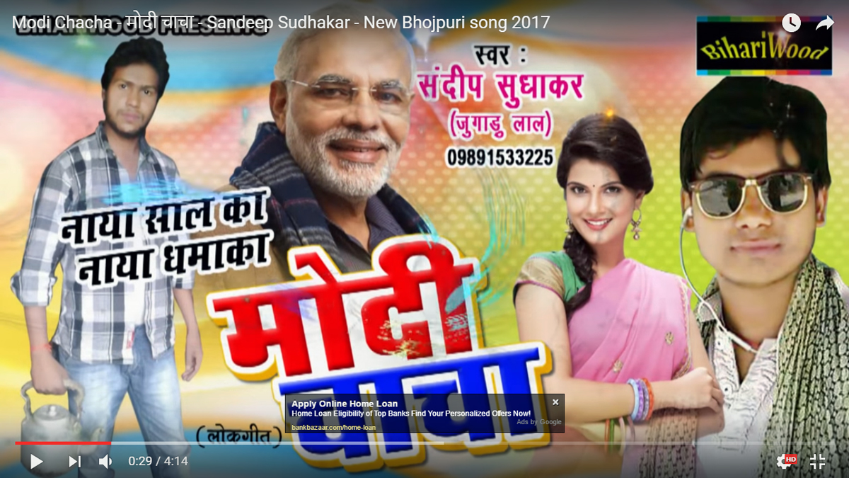 Sandeep Sudhakar is another 26-year-old Bhojpuri singer from Jaunpur district of Uttar Pradesh. A musical celebrity in his own right, he has recorded six songs so far and one of his songs Modi Chaiwala became an instant hit on Youtube. Till date, the song has got over 2.29 lakh views.